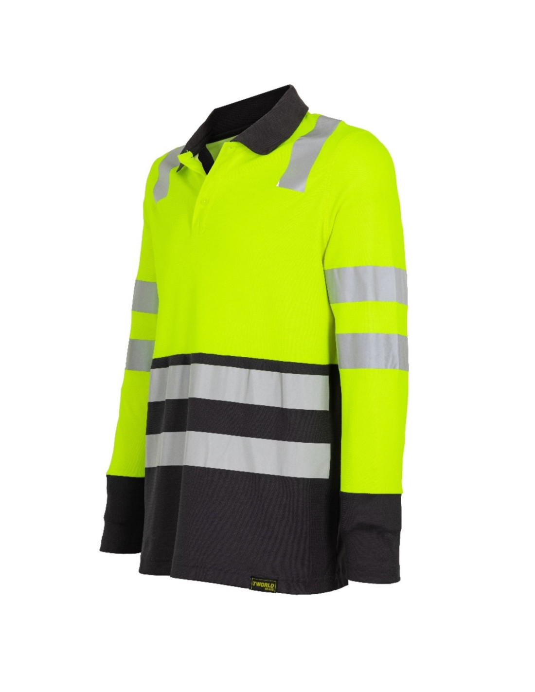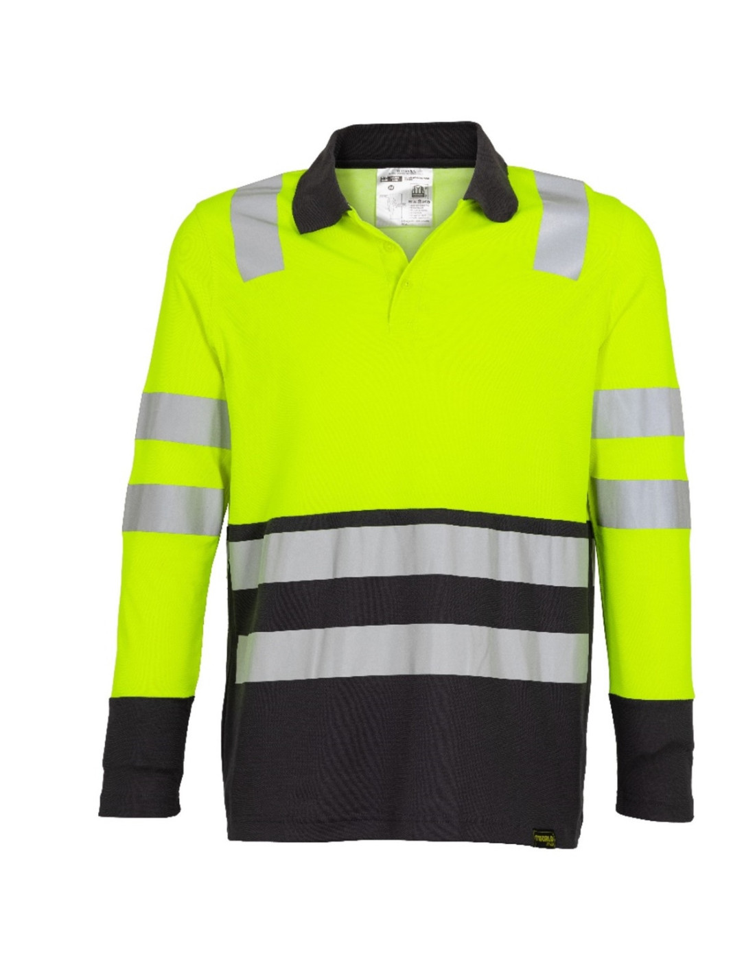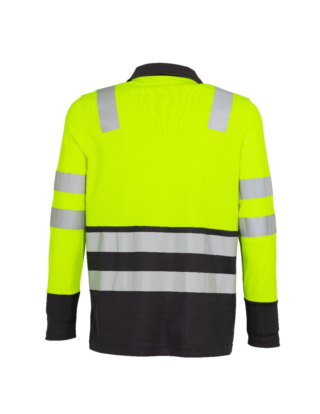 Polera Alta Visibilidad Bi Color cuello piqué para Hombres Manga Larga Amarillo / Gris Oscuro